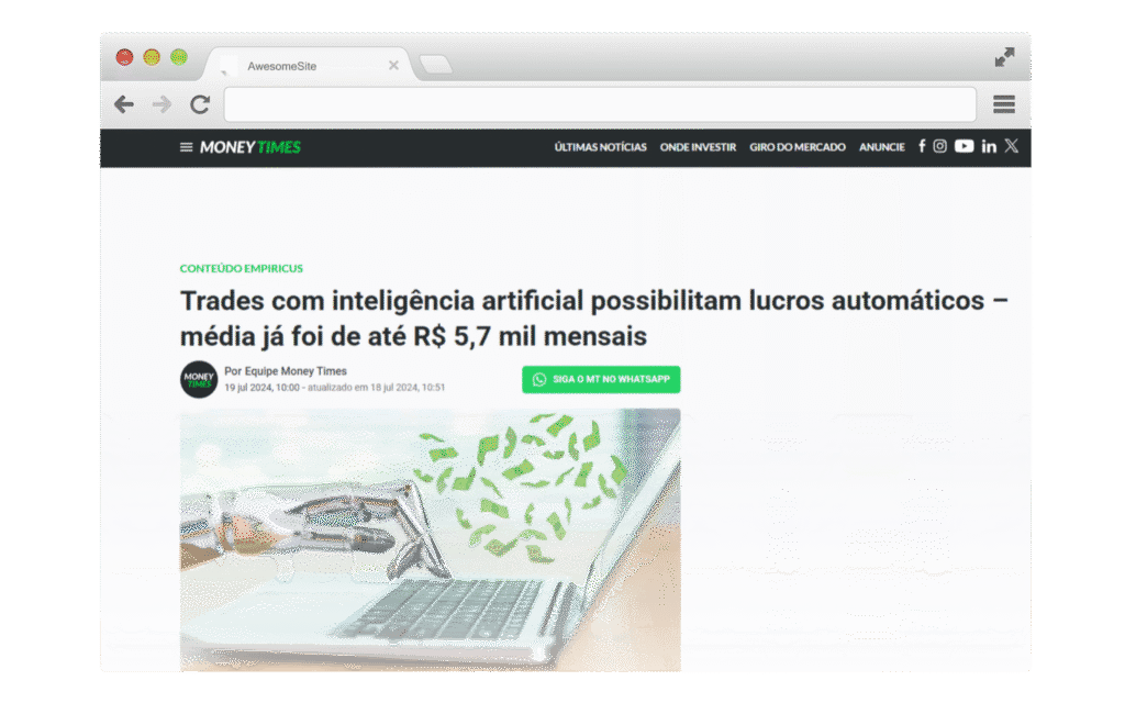 A IA que transforma qualquer pessoa em um trader lucrativo que ganha de R$500 a R$1.000 por dia 100% no automático.